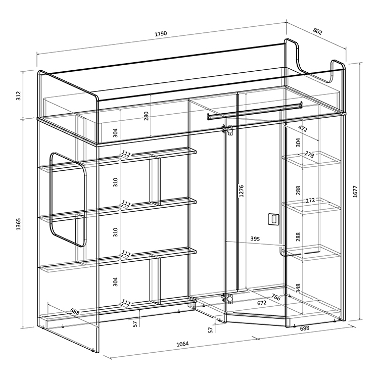 Высота кровати чердака всего 1677 мм.